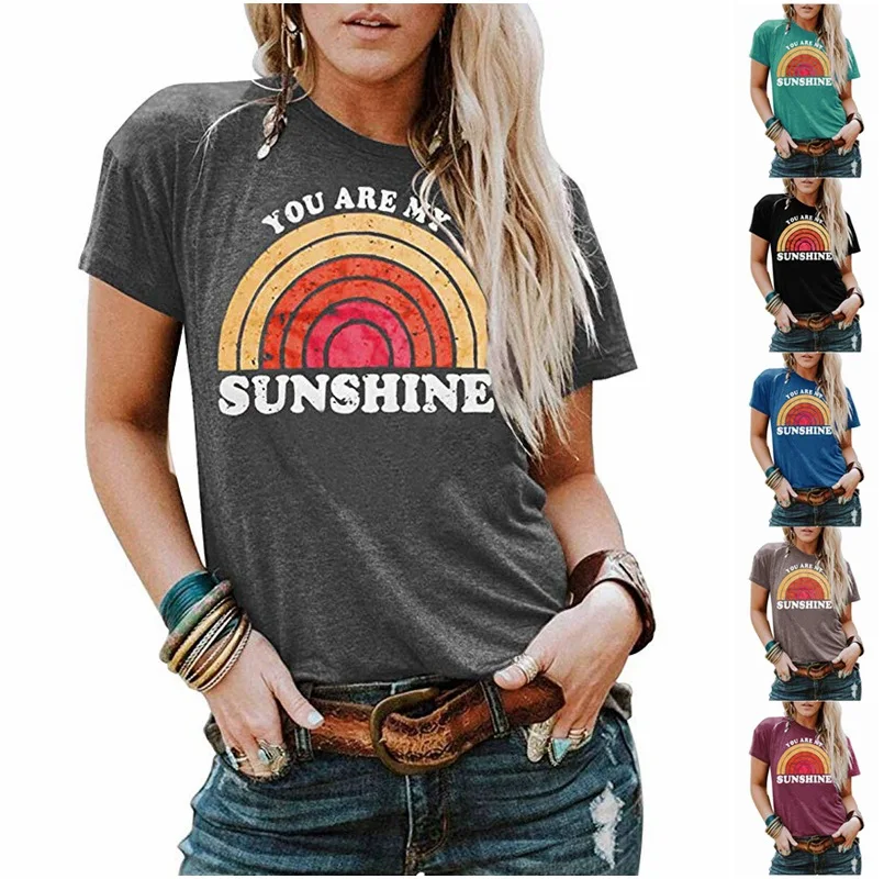 Женская футболка с принтом «You Are My Sunshine», летняя футболка с коротким рукавом и круглым вырезом, повседневная женская футболка большого размера в стиле Харадзюку