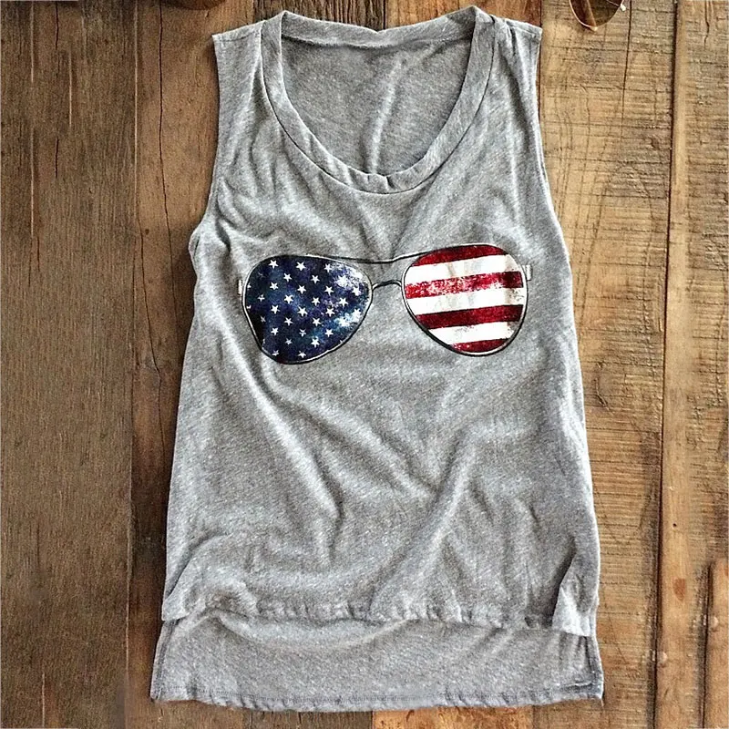 Женские летняя майка с бретелями без рукавов американские флаг с очками принт женский o-образный вырез майка повседневные женские топы