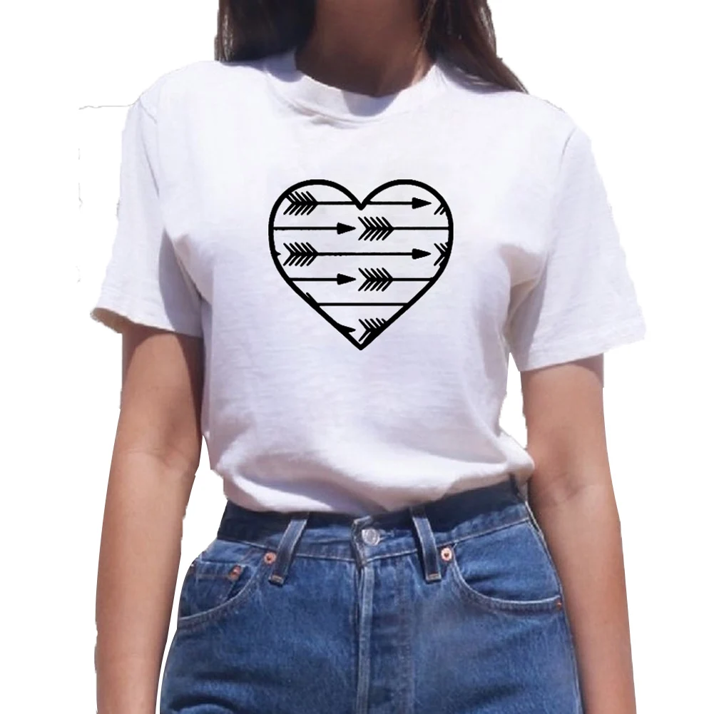 Сердце со стрелой графическая футболка женская летняя хлопковая футболка с коротким рукавом женская черная белая свободная футболка Женск...