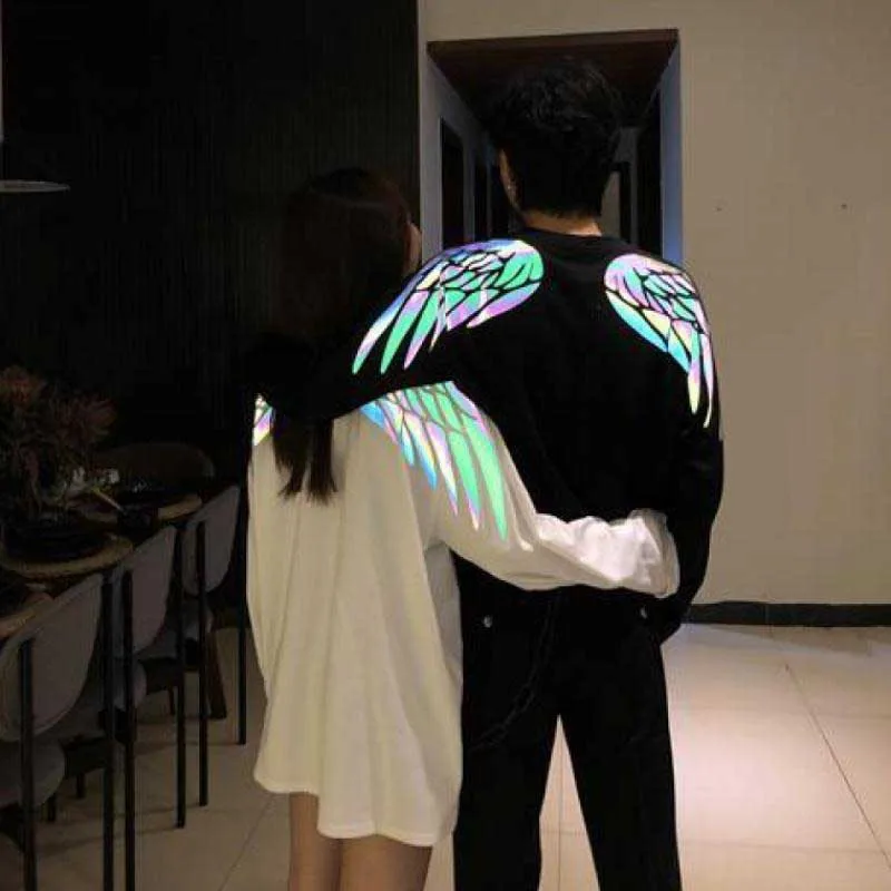 NiceMix INS, хит, Grilfriend, большой размер, короткий/длинный рукав, одежда для пары, светоотражающий принт с крыльями, Harajuku, футболка, мужская и женская мода, P