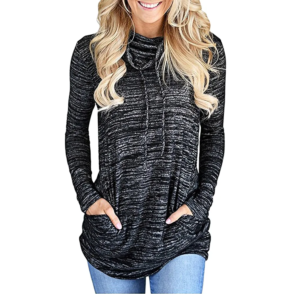 Wipalo Женская спортивная туника с длинным рукавом, уличный стиль, большой размер, воротник хомут, тонкий топ