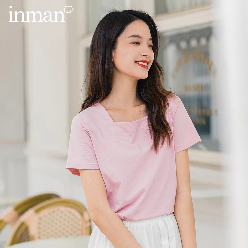 Футболка из хлопка, однотонная, свободная, inman, 2020