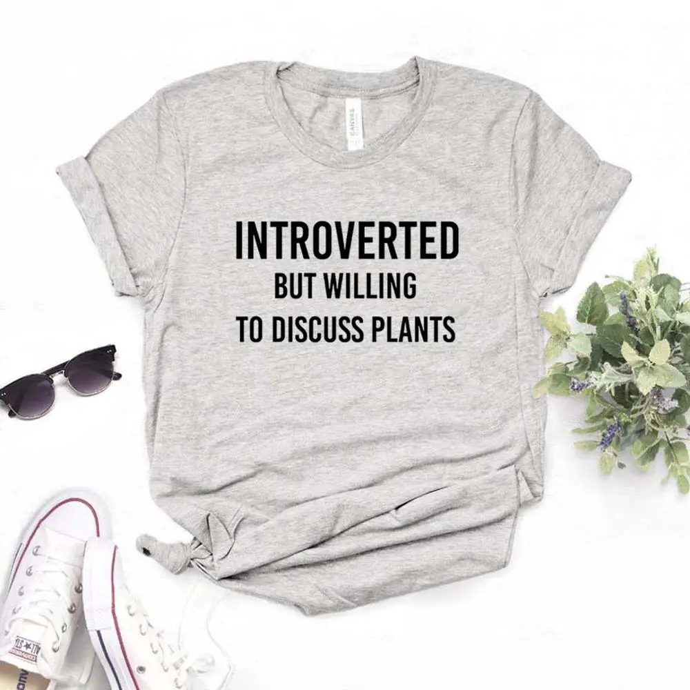 Introverted, но готовы обсудить растения, женская футболка, смешные изделия из хлопка, футболка, подарок для леди Юн, топ, футболка для девочек, 6 цв...