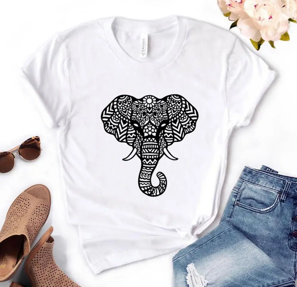 Женская футболка с принтом в виде слона и мандалы, хлопковая Повседневная забавная футболка, подарок для леди, Йонг, топ, футболка, PM-140