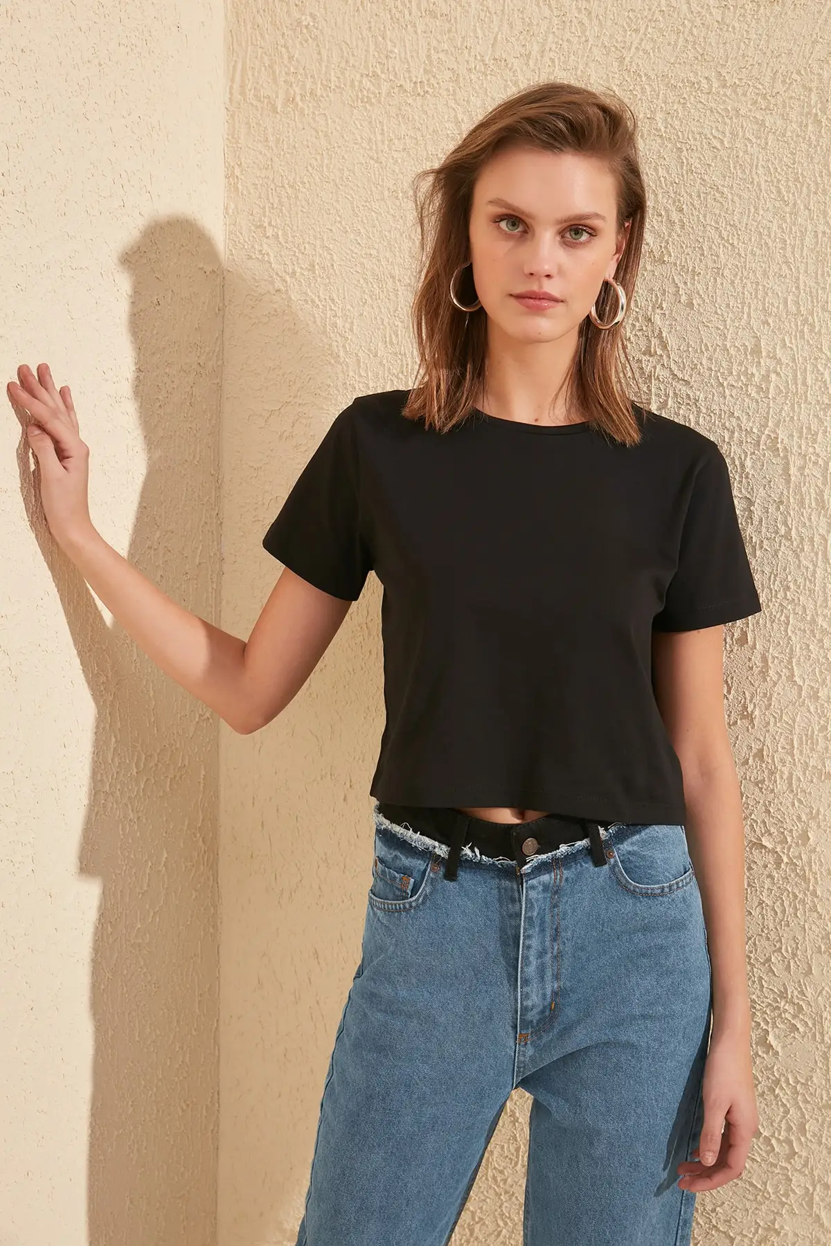 Трикотажная футболка Trendyol, 100 хлопок, одинарная, для велоспорта, с вырезом, TWOSS20TS0135
