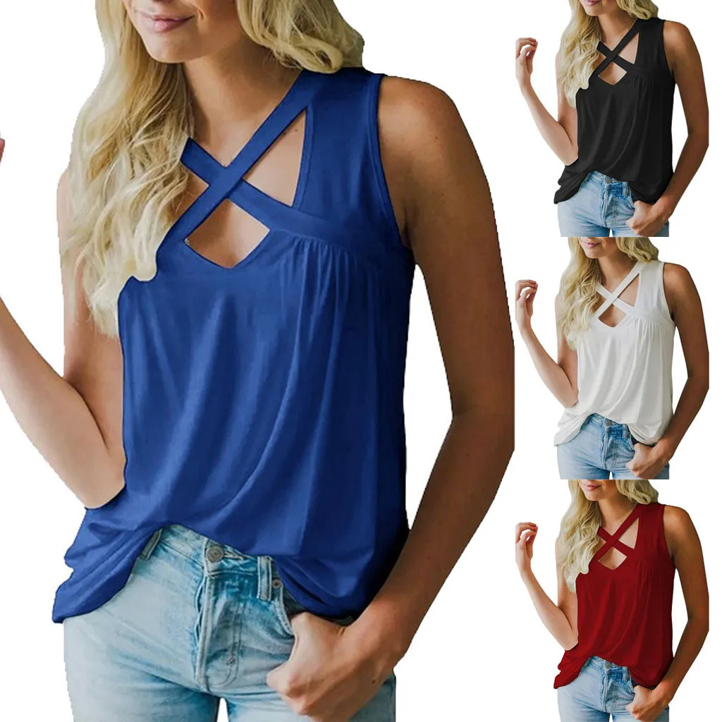 Женские летние с v-образным вырезом крест-накрест пикантные майки без рукавов Блузка Футболка обрезанная женская одежда 2019 топик летний топ