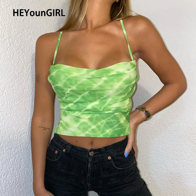 Женский топ без рукавов HEYounGIRL, облегающий топ с открытой спиной и принтом красителя, Летний жилет, майка, уличная одежда