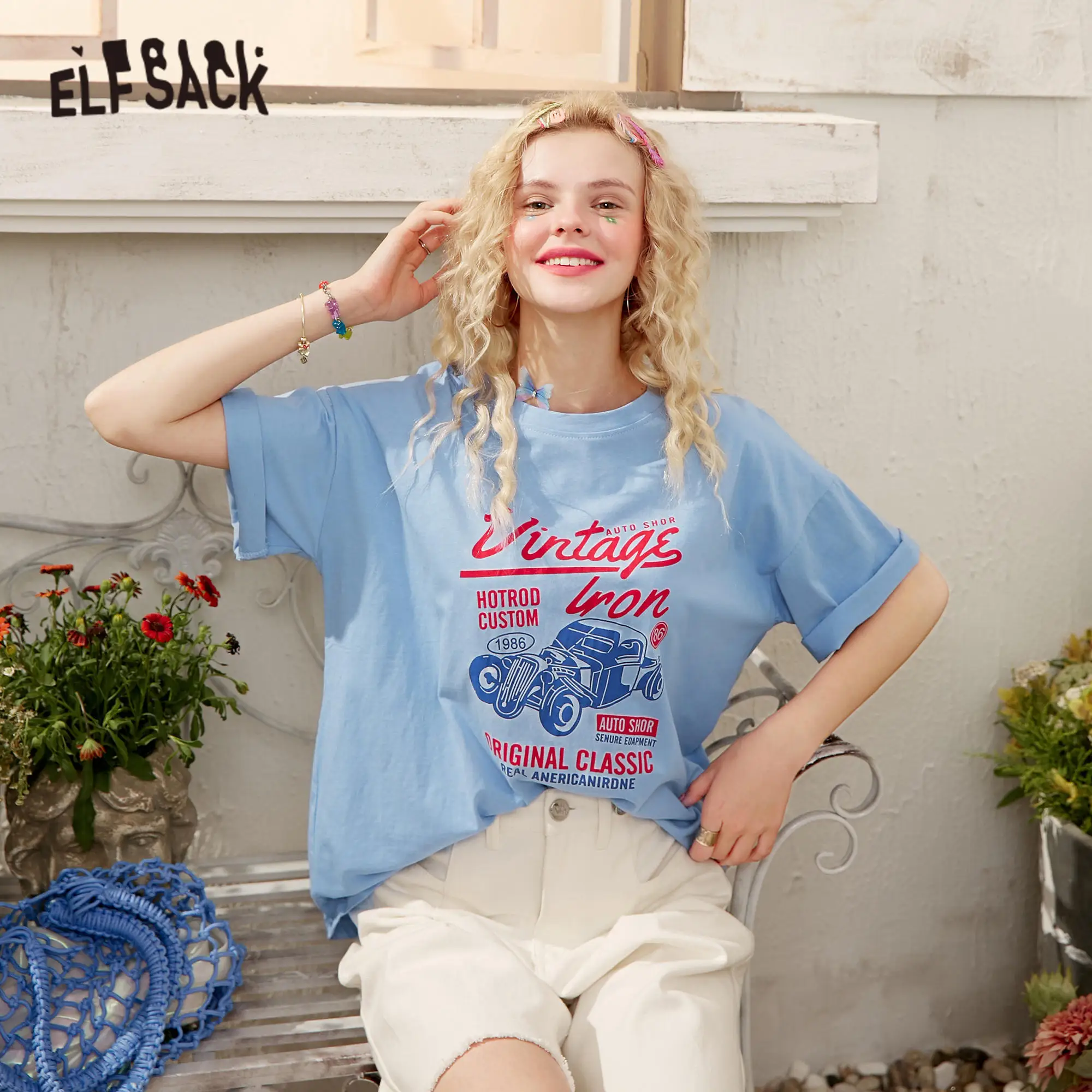 Женская Винтажная Футболка с принтом elfsack, летняя футболка в стиле Харадзюку С Длинным Рукавом и принтом