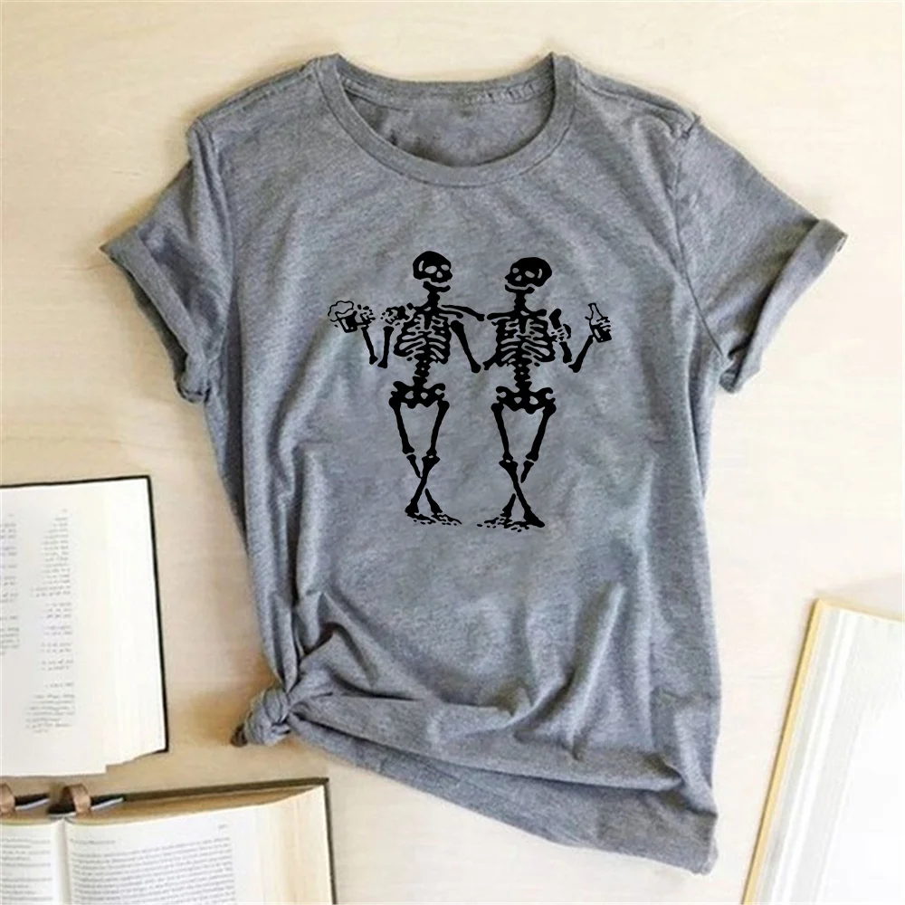 Женские модные футболки с графическим принтом, женские повседневные летние футболки и топы из полиэстера, черные футболки Harajuku с черепом, М...