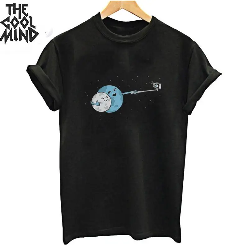 COOLMIND 100% хлопок короткий рукав Забавный космический Принт женская футболка Повседневная Свободная Женская футболка Летняя крутая футболка ...