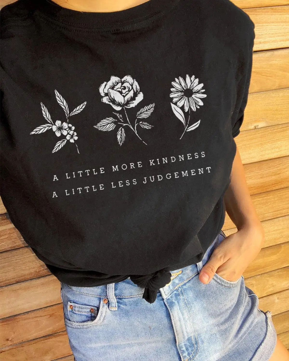 Чуть больше доброте немного меньше решение футболки стильные летние шорты рукавом цветок Сохранить ч завод Топы Цитата топы для девочек