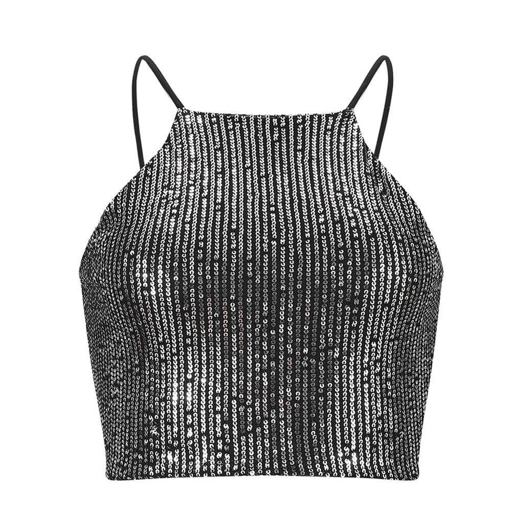 Женская Блестящая майка с блестками без рукавов