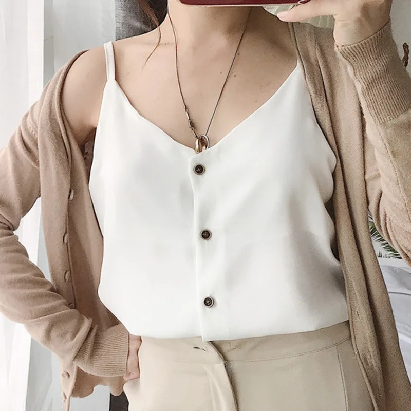 Размеры S-4XL лето для женщин шифон топики женские полиэстер майки без рукавов одноцветное футболки 8920