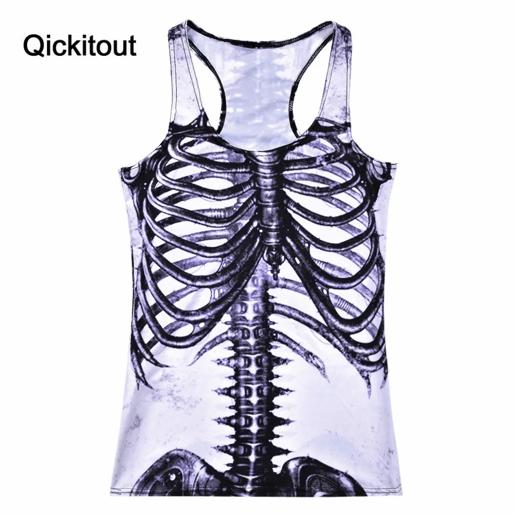 Qickitout Топы корректирующие лето 2016 Для женщин пикантные Блузки для малышек без бретелек рукавов цифровой печати Повседневное Белый Скелет Б...