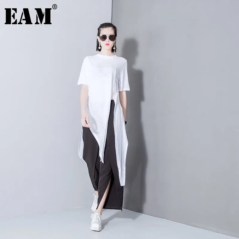 [EAM] 2019 Весенняя мода новый сплошной цвет Сплит футболка корейские свободные модальные нерегулярные футболки топы тонкие женские T29800