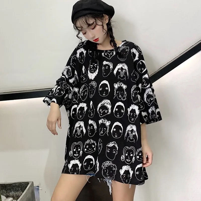 Популярные Элегантные женские футболки в Корейском стиле, свободные футболки с коротким рукавом и круглым вырезом, с графическим принтом, Ж...