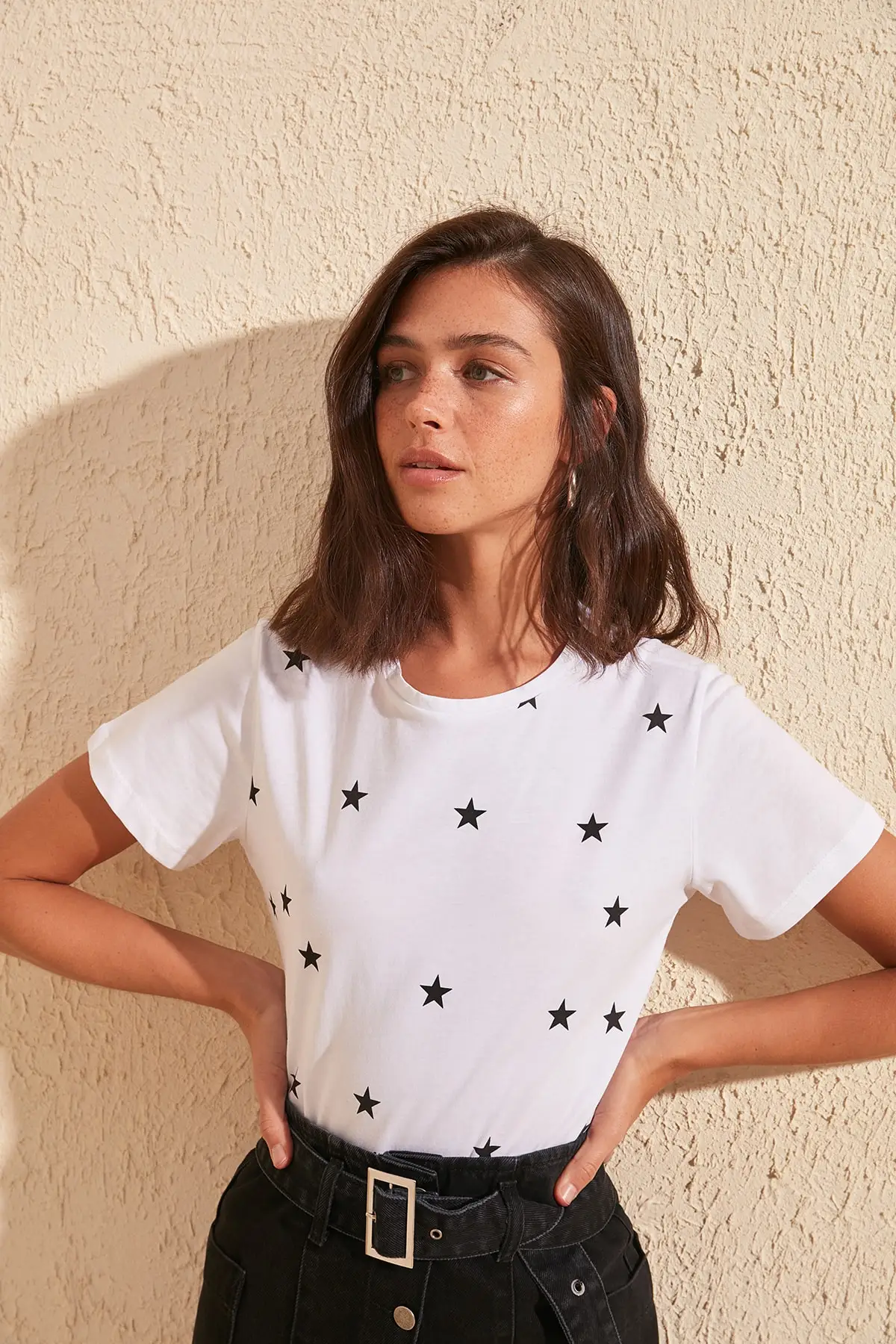 Trendyol Базовая Трикотажная футболка с принтом звезды TWOSS20TS0757
