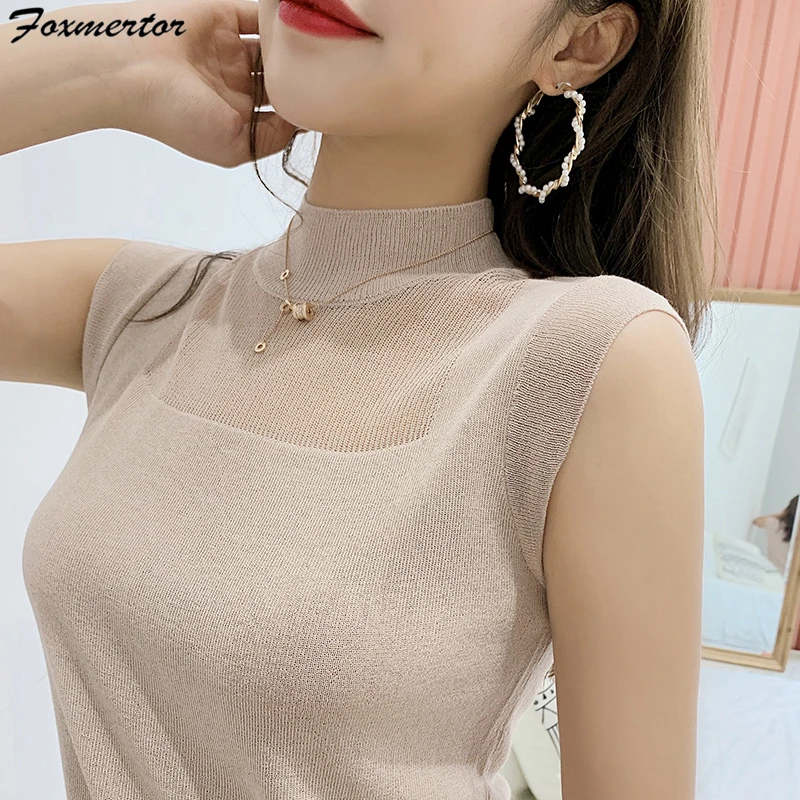 Летний Топ для женщин, Новые Топы на бретельках, Женский трикотажный сексуальный жилет, топ без рукавов, повседневный эластичный однотонный тонкий пуловер