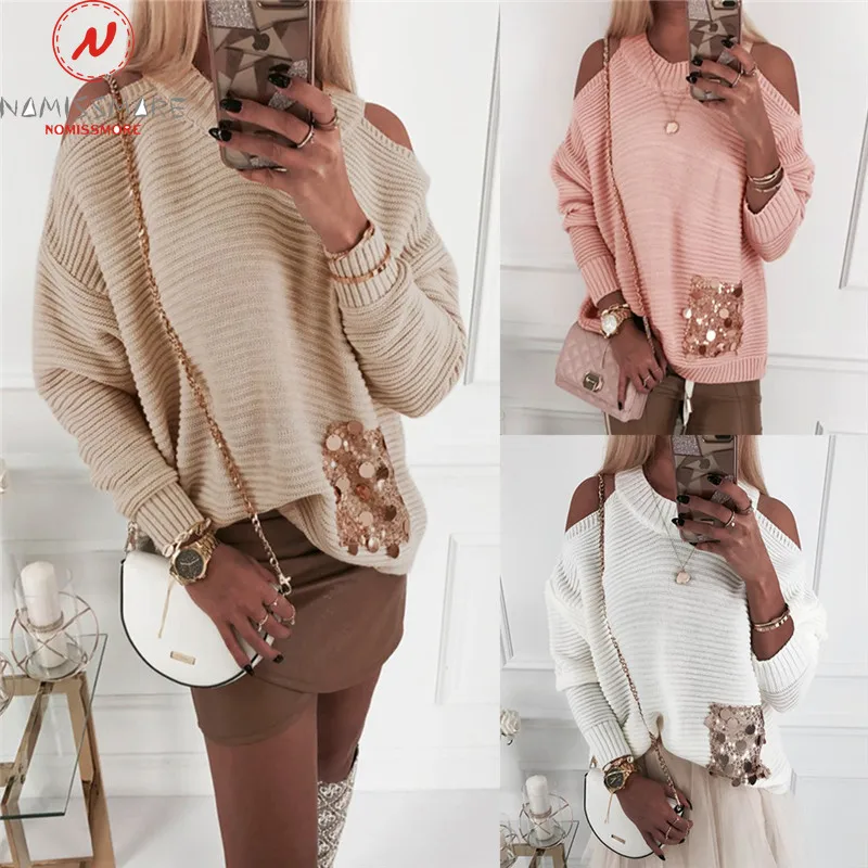 Для женщин Повседневное Свободные футболки в мозаичном стиле благодаря открытому силуэту; блестки; декор с длинными рукавами и круглым выр...