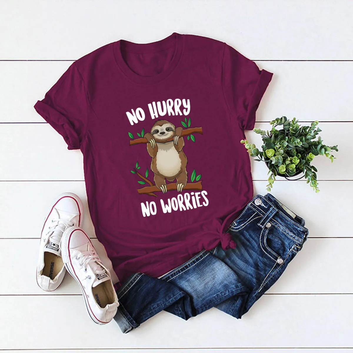 Большие размеры S-5XL, новая модная Милая забавная футболка с рисунком Ленивца, женская летняя футболка из 100% хлопка с круглым вырезом и короткими рукавами, Повседневная футболка