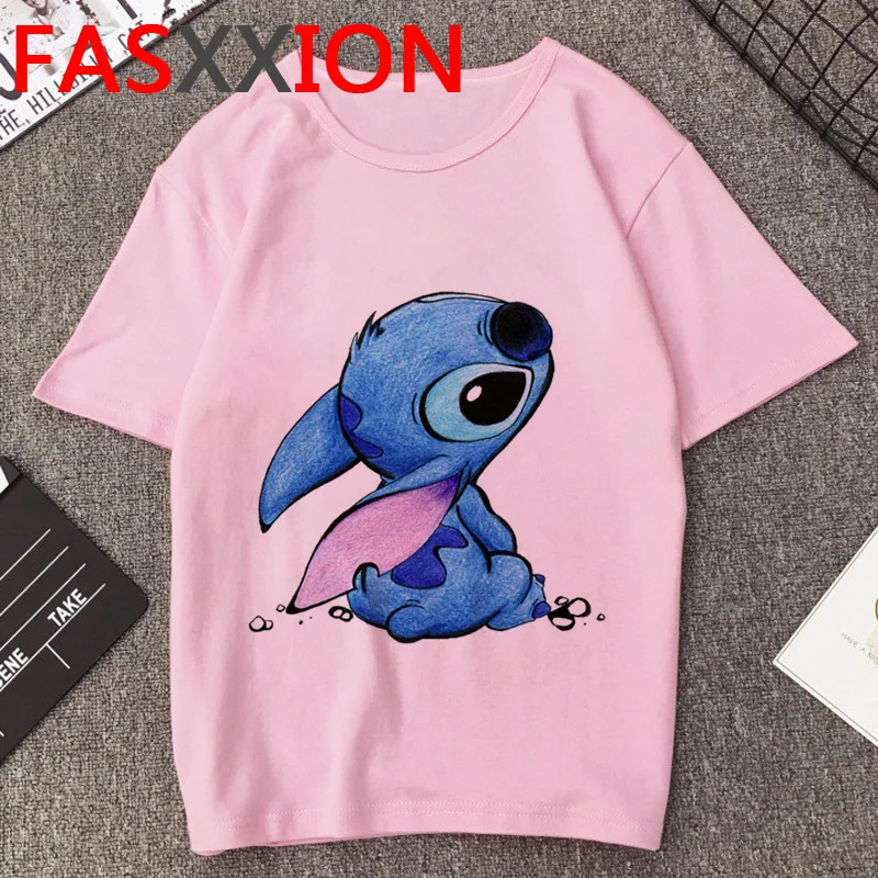 Lilo Stitch Футболка женская Kawaii футболка с рисунком Стич Ohana летний топ розовая футболка унисекс милые большие размеры Графические футболки женские