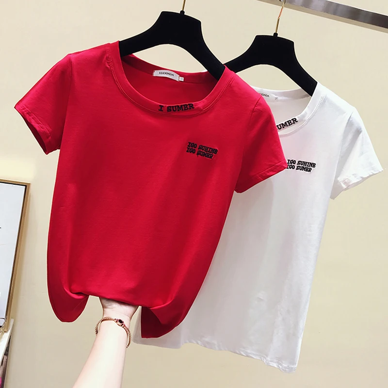 Новинка, футболка с вышитыми буквами, Женская белая футболка, женская одежда, хлопковая летняя Красная футболка с коротким рукавом для женщин, Vetement Femme 2020