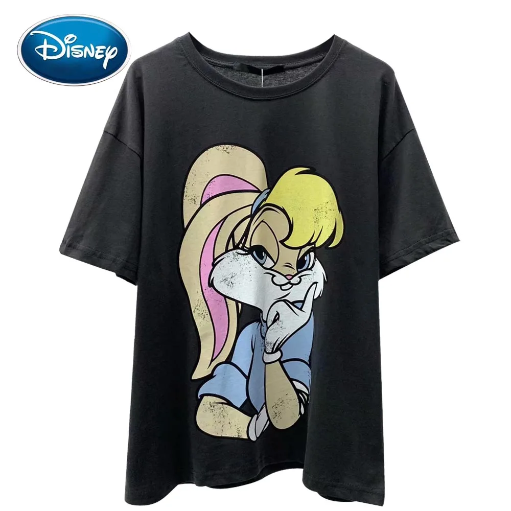 Дисней стильная Лола кролик мультфильм печати Черная Женская футболка короткий рукав Уличная o-образным вырезом пуловер свободные футболк...