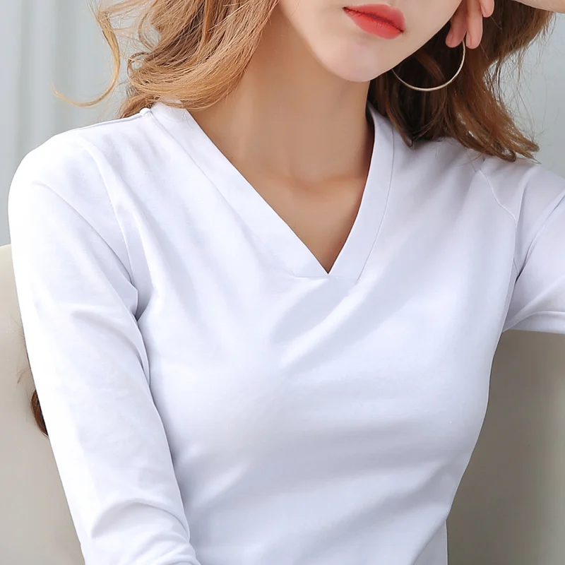 Женская футболка с v-образным вырезом и длинным рукавом, Стрейчевые топы, базовая майка с открытыми плечами, базовый идеальный пуловер harajuku ropa mujer, 2020