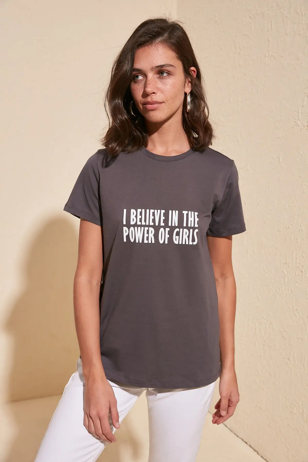 Trendyol Базовая Трикотажная футболка с принтом TWOSS20TS0619