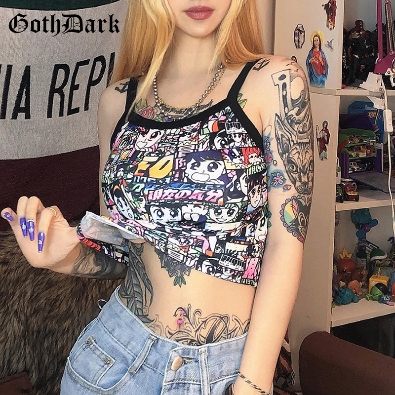 Женский топ без рукавов Goth Dark, уличная одежда в стиле Харадзюку, с принтом с героями мультфильмов, лето 2020
