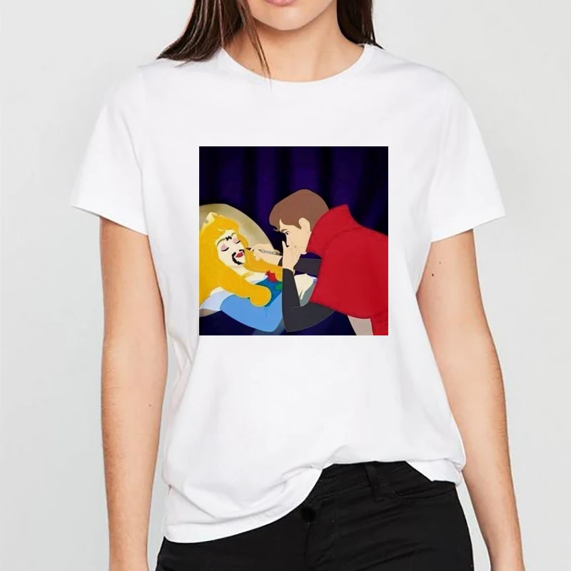 Футболка принцессы с принцем, каваи, лето 2019, забавная футболка, женская футболка Harajuku, Корейская одежда, уличная мода, Топ