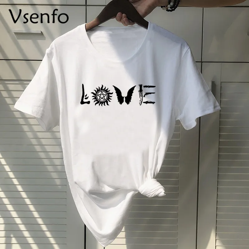 2020 модная футболка с принтом «Сверхъестественное сердце», футболка унисекс с короткими рукавами и круглым вырезом, повседневные топы с при...