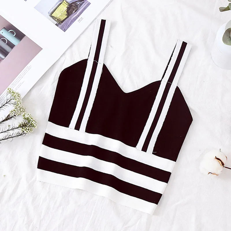 HELIAR Женский вязаный шикарный укороченный топ, сексуальный полосатый топ на бретельках, черный укороченный топ 2019, летний хлопковый женский ...