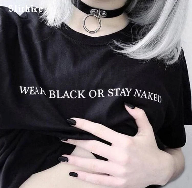 Slithice, носить черный или остаться голый Футболка с принтом буквами женские футболка Топ Повседневное Летний стиль Для женщин хлопковые футб...