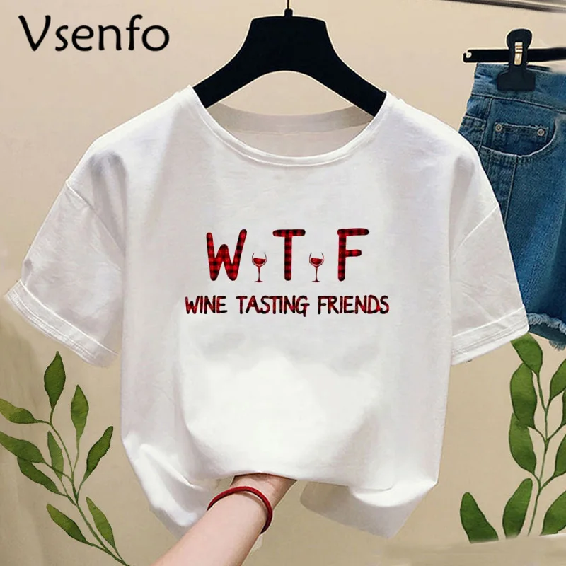 Футболка с надписью WTF с принтом Женская Harajuku винная дегустация друзья женские футболки летние топы с коротким рукавом и круглым вырезом