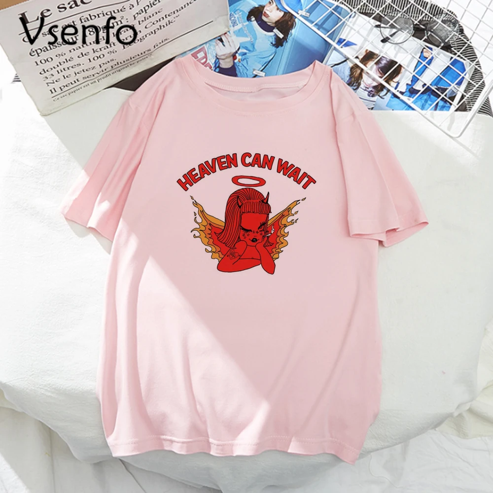 Женская футболка с изображением ангела Heaven Can Wait, повседневная забавная футболка с принтом, топы для девушек