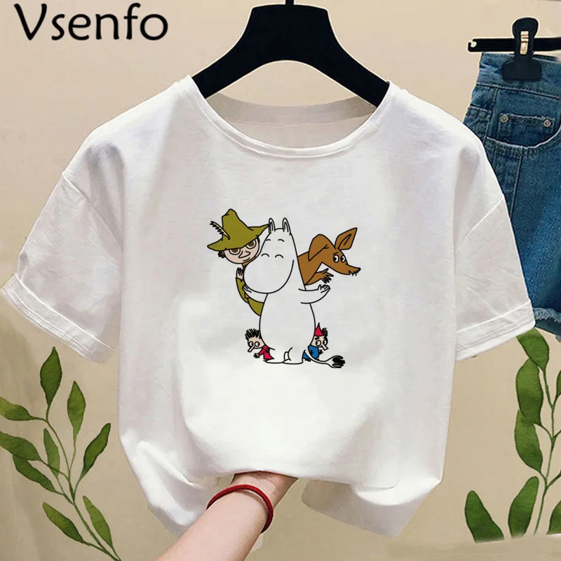 Женская футболка Moomin Harajuku, забавная Футболка с принтом Kawaii, летняя женская одежда с круглым вырезом и коротким рукавом, Tumblr, графические футболки, Camiseta