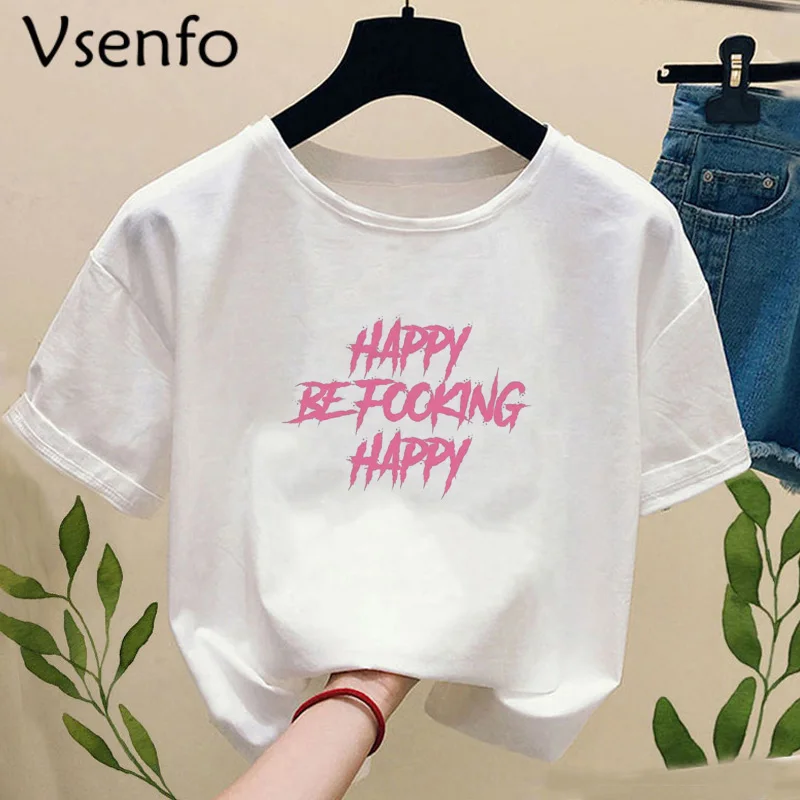 Горячая harajuku Короткие футболки с короткими рукавами Для женщин летние FACK письмо о-образным вырезом kawaii плюс Размеры черный белый tumblr футбол...