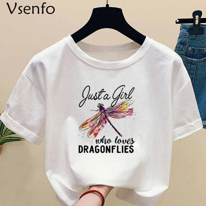 Женская модная футболка с круглым вырезом и принтом стрекозы, Повседневная футболка с коротким рукавом, летняя Милая женская одежда, топы