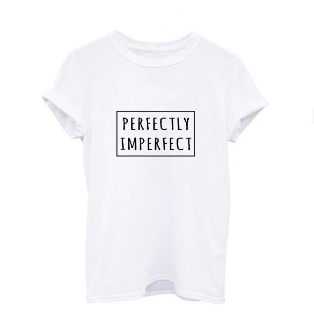 Совершенно неидеальная модная летняя хлопковая футболка, женские топы с коротким рукавом и круглым вырезом, белая Повседневная тонкая футб...