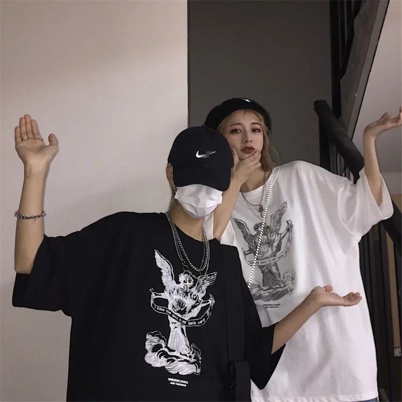 Harajuku ретро футболка feminina футболка de manga curta ins anjo escuro solto de manga curta estudante homens e mulheres camisa