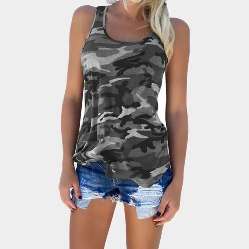 Повседневные камуфляжные футболки без рукавов женские сексуальные u-образным вырезом с открытой спиной тонкие хлопковые футболки Лето плю...