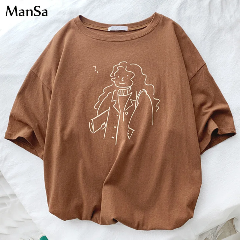 Женская футболка с принтом WOTWOY, винтажная свободная футболка с о-вырезом из хлопка в Корейском стиле на лето