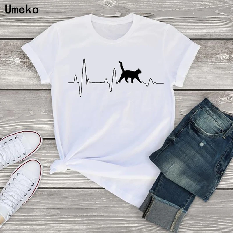 Шикарная Повседневная футболка с мультяшным котом, простые белые топы, женские летние милые футболки для женщин, 2020 новые футболки с круглым вырезом, одежда mujer