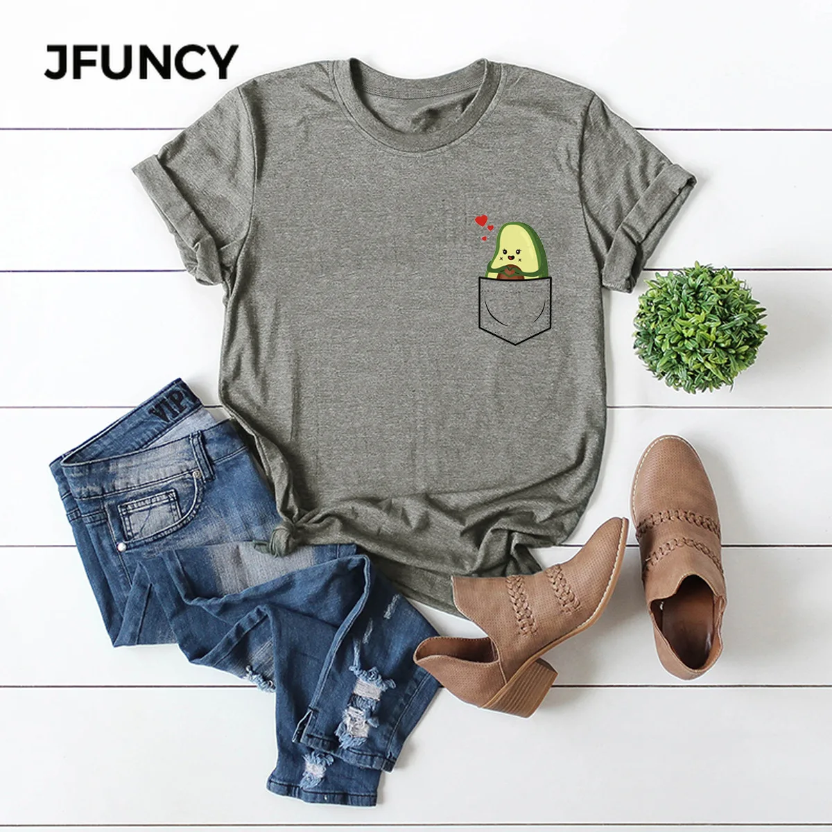 Женская футболка с карманами JFUNCY, летняя хлопковая Футболка оверсайз с принтом