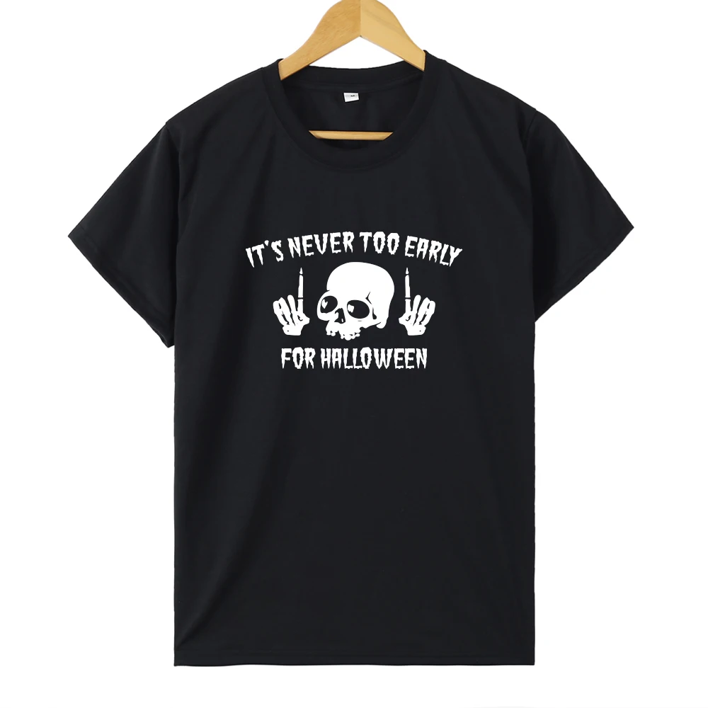 Деревенский короткий рукав для женщин Графический череп Забавные футболки это никогда не слишком раннее для Хэллоуина футболка мода подар...