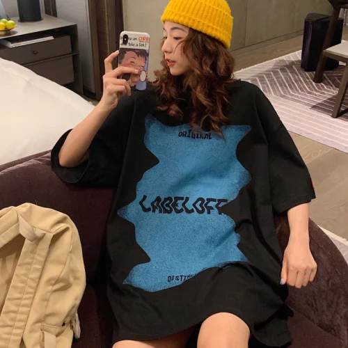Свободные длинные дизайнерские футболки с буквенным принтом в стиле колледжа, с круглым вырезом, Хит, женские летние футболки с коротким рукавом Halajuku