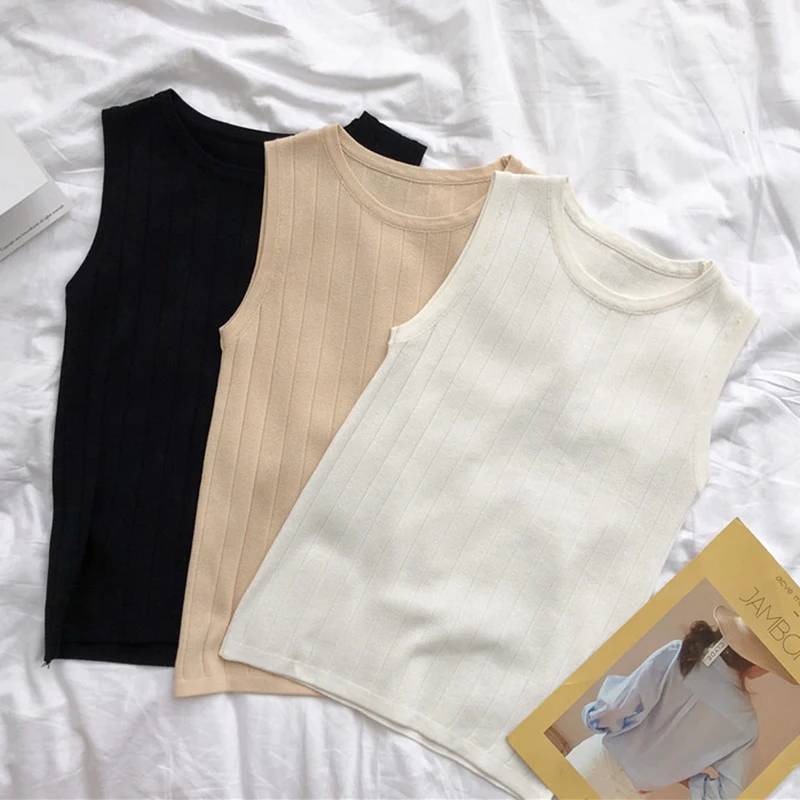 Женский топ на бретельках, эластичный белый Повседневный трикотажный топ в полоску, 2020