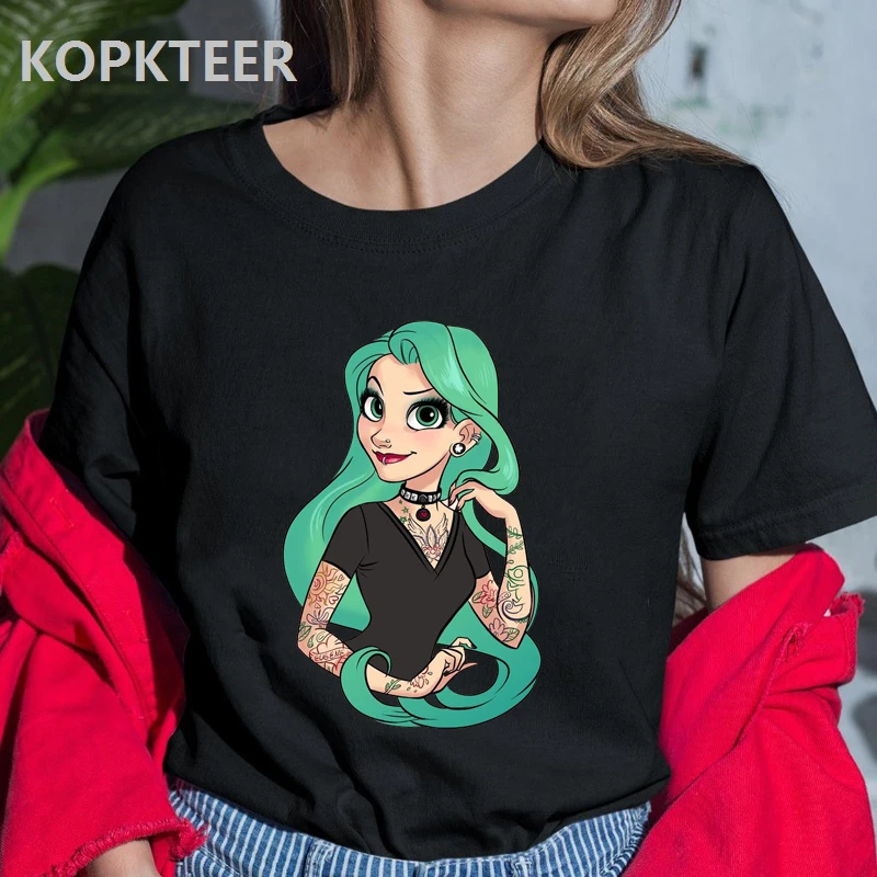 Новая хлопковая женская футболка 2019 Harajuku эстетика футболка принцессы татуировки винтажная Camiseta Mujer топы повседневная черная футболка Femme
