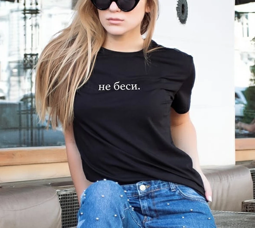 2019 Модные женские футболки с коротким рукавом черного и белого цвета с надписью «Русская надпись», женские топы, Летняя женская одежда